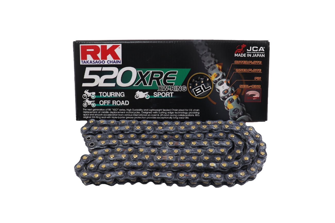 Αλυσίδα RK BL520XRE-122L CLF Μαύρη (BLACK SCALE) Η RK JAPAN είναι από τις κορυφαίες αλυσίδες στον κόσμο της μοτοσυκλέτας. Η RK JAPAN κατασκευάζει γρανάζια και αλυσίδες για μερικούς από τους μεγαλύτερους OEM κατασκευαστές στον κόσμο της μοτοσυκλέτας όπως είναι η HONDA, SUZUKI, DUCATI, YAMAHA, TRIUMPH etc. Ιδρύθηκε στις 24/11/1951 και έκτοτε διατηρεί μια ανοδική πορεία εξέλιξης και τεχνογνωσίας, κερδίζοντας καθημερινά την εμπιστοσύνη των αναβατών μέσα από την αξιοπιστία και την ασφάλεια που τους παρέχει. Ο Marc Marquez, No1 στο MOTO GP επιλέγει RK JAPAN, εσύ ακόμα το σκέφτεσαι? Συμβουλέψου τον κατάλογο εφαρμογών για να βρεις την κατάλληλη αλυσίδα για εσένα και την μοτοσυκλέτα σου. Η RK JAPAN είναι από τις κορυφαίες αλυσίδες στον κόσμο της μοτοσυκλέτας. Η RK JAPAN κατασκευάζει γρανάζια και αλυσίδες για μερικούς από τους μεγαλύτερους OEM κατασκευαστές στον κόσμο της μοτοσυκλέτας όπως είναι η HONDA, SUZUKI, DUCATI, YAMAHA, TRIUMPH etc.