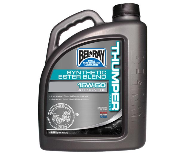 Λιπαντικό BEL-RAY 99530 4T THUMPER 15W-50 X4L 100% Συνθ.API SN/JASO MA2 Bel-Ray Thumper Racing Works Synthetic Ester 4T Λάδι Κινητήρα είναι ένα αγωνιστικό λάδι για 4-χρονες μοτοσικλέτες