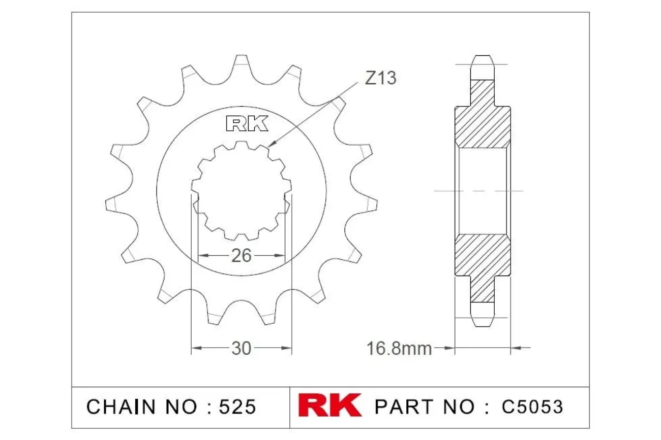 Γρανάζι Κίνησης RK C5053-16ZZ5 (JTF1370.16RB) Με Αντιθορ.Λάστιχο XLV1000VARADERO'99-13,CRF1000/1100AFRICA T'16-24,CBF600F HORNET/R'07-13