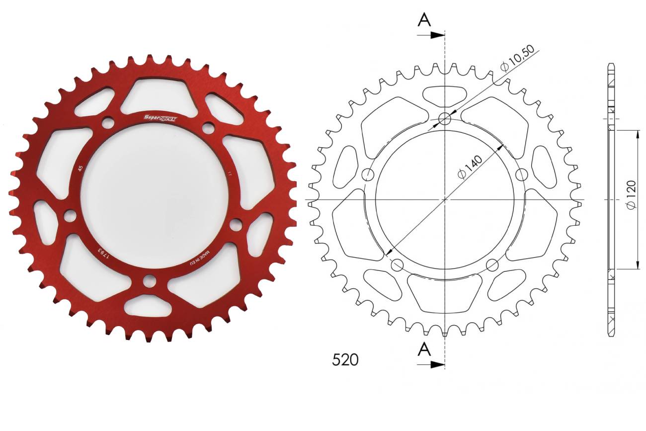 Γρανάζι Τροχού SUPERSPROX/RAL-1793-45T ALUMINIUM-Κόκκινο DL650/1000VSTROM,GSX-R600/750(520),GSF1200/1250BANDIT(520),TRIUMPH/865SCRAMBLER,BONNELILLE
